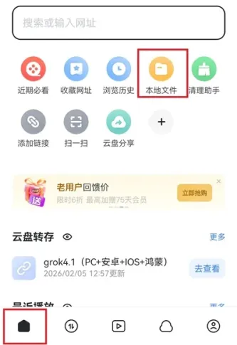 1、点击【首页】的【本地文件】。