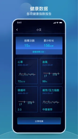 3、使用记录:统计按摩椅运行频次与时长,帮助用户掌握设备使用情况;