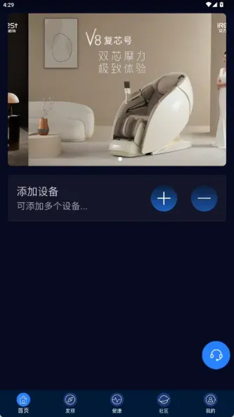 1、启动应用后依次添加已购设备,完成多台按摩椅的配对连接;