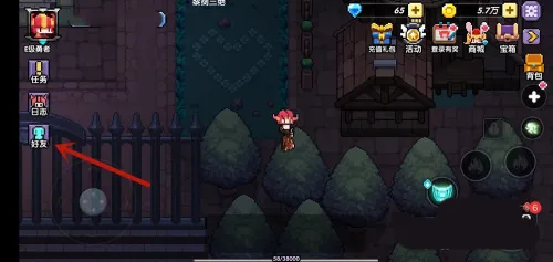 2、在我的勇者游戏世界里,找一个可以一起下副本,一起研究打法和装备技能的好友是很重要的。有的新手玩家不是很清楚怎么添加好友,首先你的角色等级要到达两级。等你的角色到达两级时就解锁好友系统。好友系统的位置位于主界面的左侧中间,也就是日志的下方。